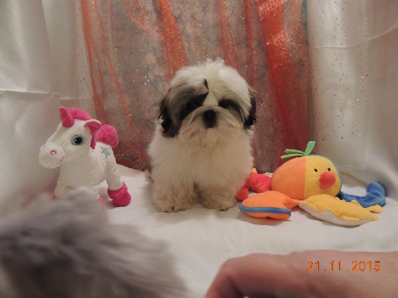 Sujet de grand gabarit, je souhaiterais plus joyeux, bonne forme de crane, bonne longueur de chanfrein, le remouché est correct l'?il de bonne forme et couleur, prognathe, bon mentons, bonne forme de corps, avant main un peu ouverte, angulation suffisantes, poils très bien entretenu et de bonne longueur, ne se présente pas aux allures
